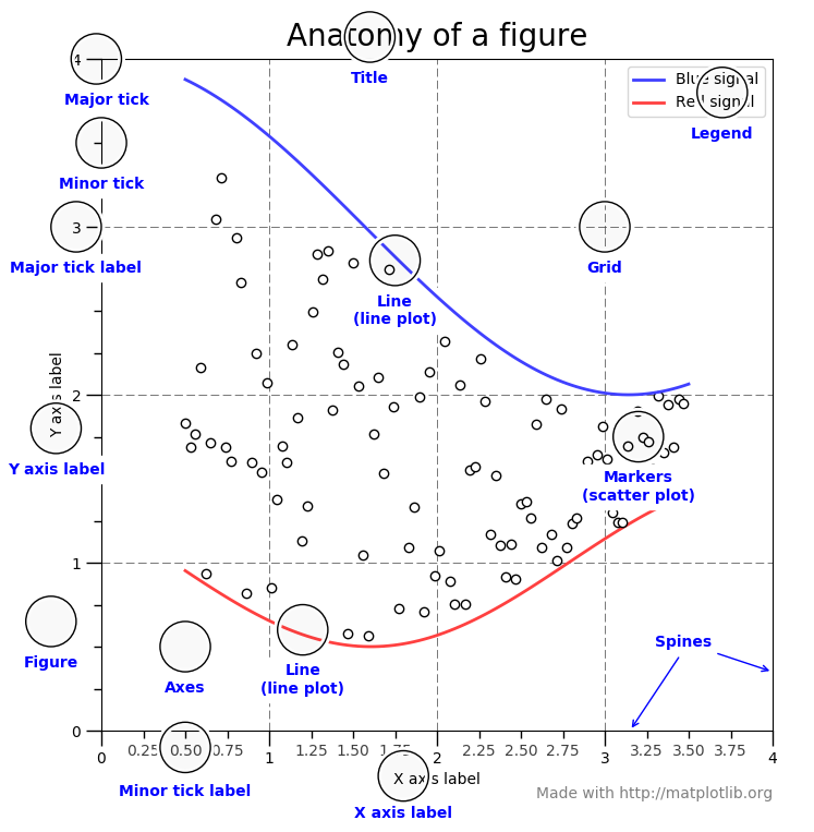 - figure의 가장자리. 각각의 axes는 4개의 spine을 가짐