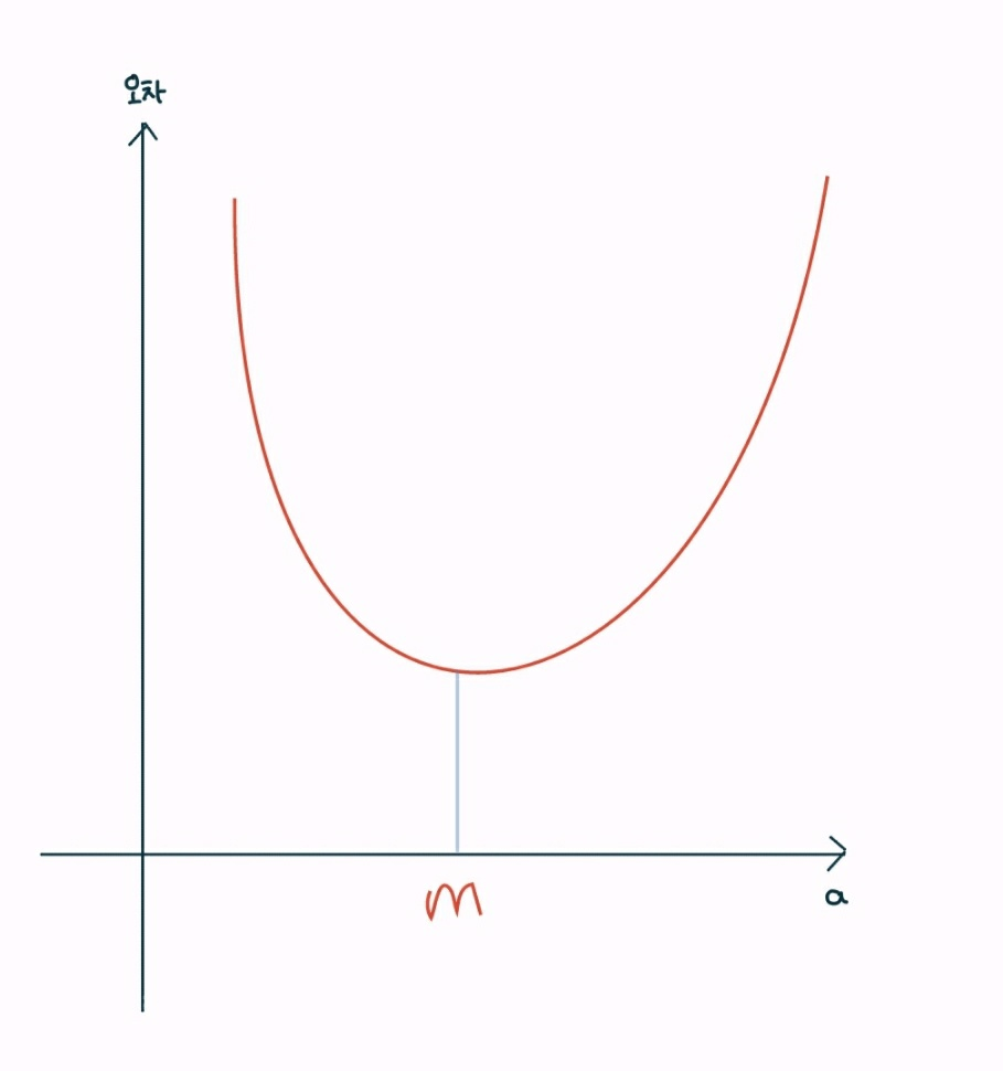 이러한 a와 오차 간의 관계는 2차 함수 그래프로 표현할 수 있다.
