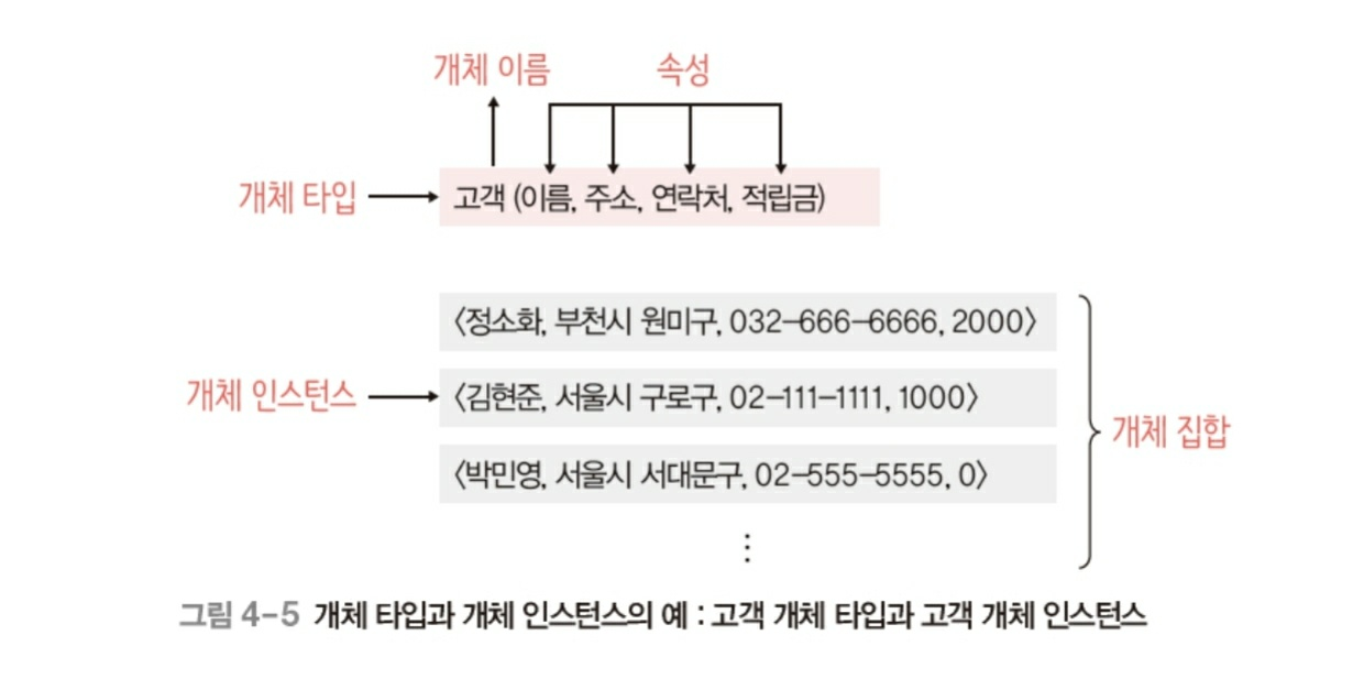 - 개체와 개체 간 관계를 이용해 현실세계를 개념적 구조로 표현