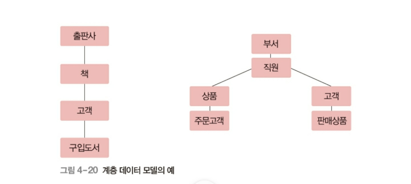 - 관계 데이터모델, 계층 데이터 모델, 네트워크 데이터 모델