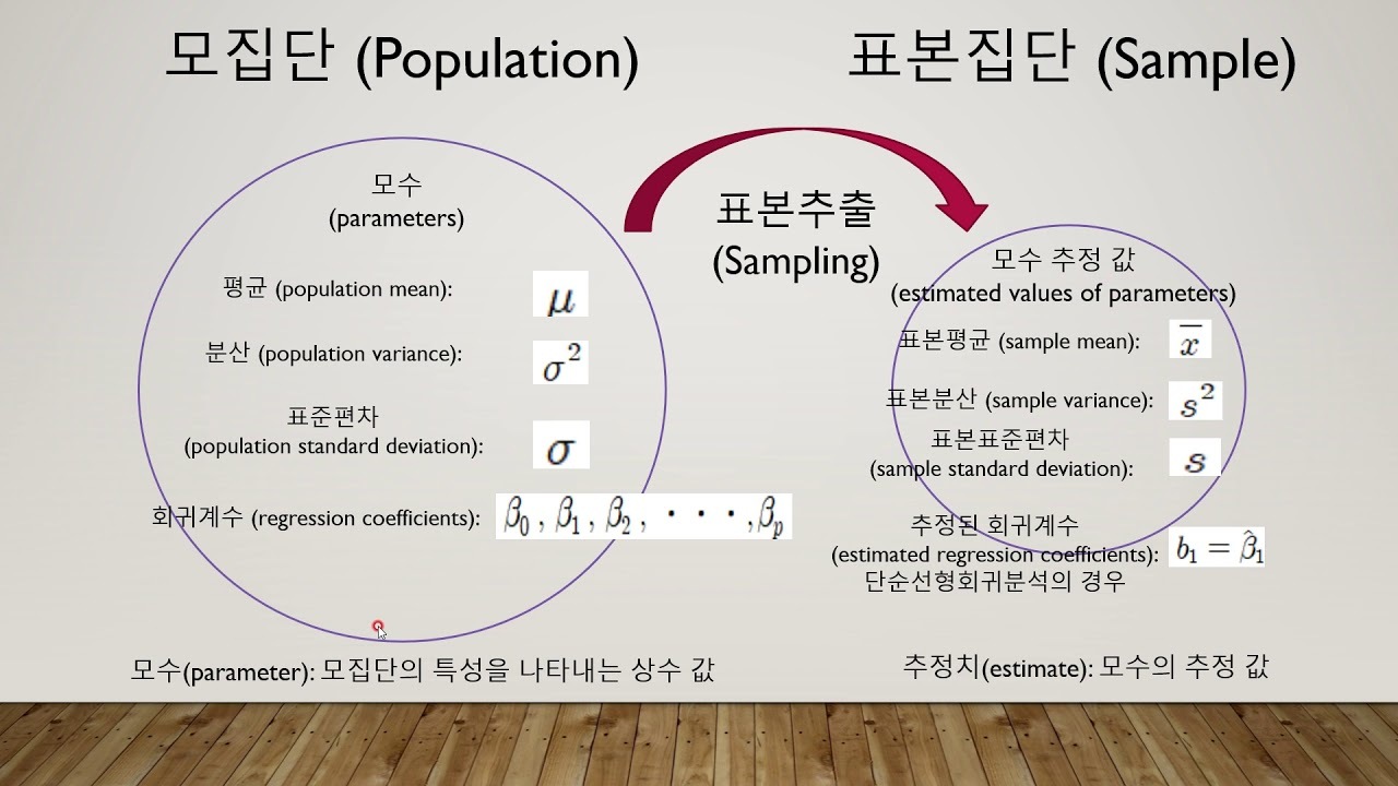 관심 대상인 모집단의 특성을 해당 모집단에서 추출한 표본을 이용해 추측(inference)