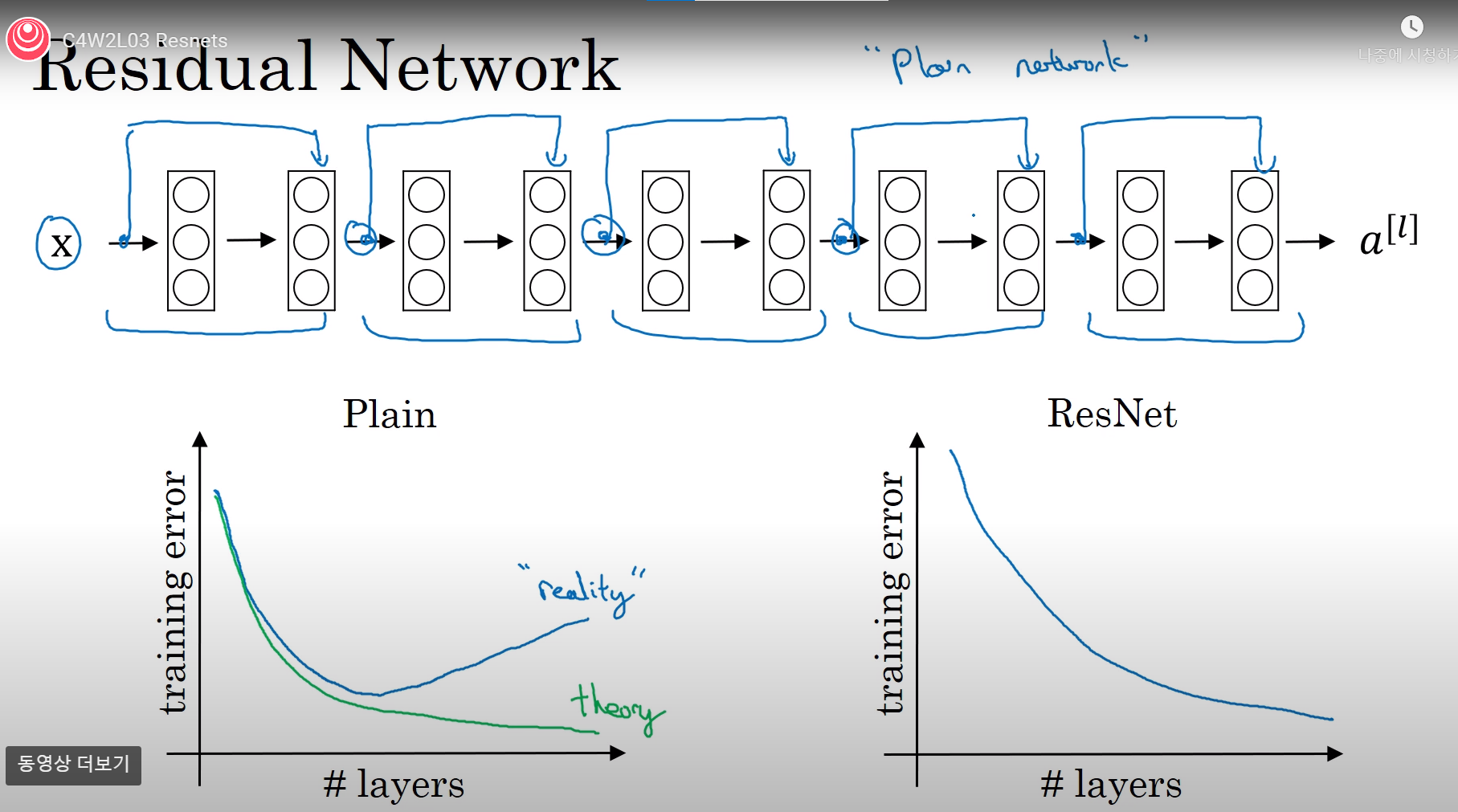 이러한 문제를 해결하고자 새로운 방법을 도입한 ResNet이 등장하였다.