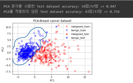 print("PCA 분석을 사용한 Test dataset accuracy: {}명/{}명 => {:.3f}".format(pca_test_accuracy_dict[True], sum(pca_test_accuracy_dict.values()), clf.score(pc_test, test_y)))