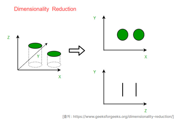 - 위의 사진의 X-Y-Z를 차원축소한 두 그림 중 원본 데이터를 더 잘 표현한 것은 직관적으로 봤을 때 X-Y 그래프 일 것이다.