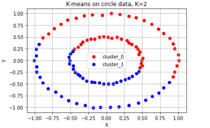 circle_dbscan = DBSCAN(eps=epsilon, min_samples=minPts) # 위에서 생성한 원형 분포 데이터에 DBSCAN setting