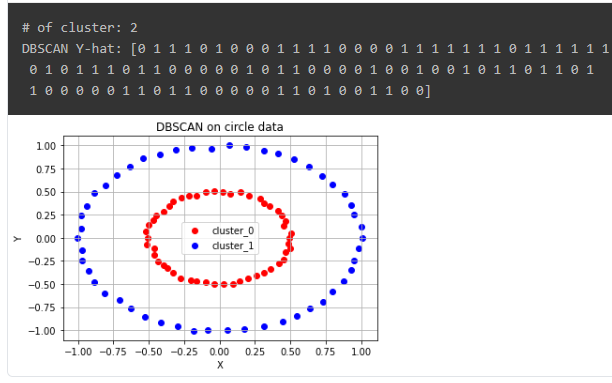 print(f'DBSCAN Y-hat: {circle_dbscan.labels_}')