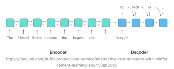 - 딥러닝의 RNN을 이용해 추상적 요약을 구현하기에는 RNN의 장기의존성 때문에 정보 손실이 발생한다. 이러한 문제를 해결하고자 seq2seq 모델의 Attention 메커니즘이 등장하였다.