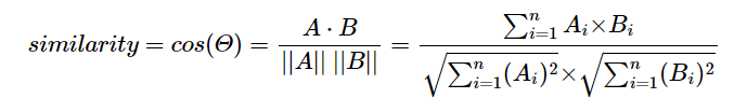 - 유사도를 구하는 방식은 다양하지만 보편적으로 코사인 유사도를 많이 사용한다.(아래 참고)