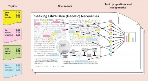 - 노란색 토픽일 때 gene 단어가 등장할 확률은 0.04이다