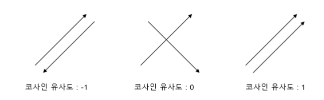 - 두 벡터가 서로 독립적인 경우 코사인 유사도: 0