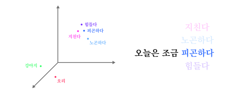 - Word2Vec, GloVe 등의 기법을 통해 학습된 embedding은 유사한 단어들끼리 비슷한 공간에 밀집된다.
