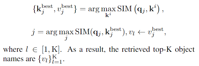 - 선택된 top-K value $v_j^{best}$는 input 이미지에 대한 retrieved top-K object names $v_l$로 재정의
