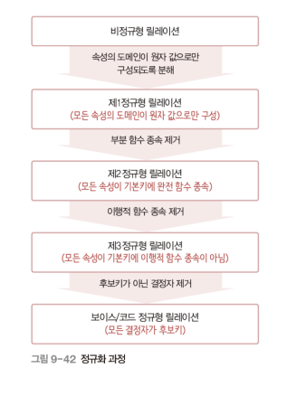 - 이상현상을 제거하며 데이터베이스를 올바르게 설계하는 과정