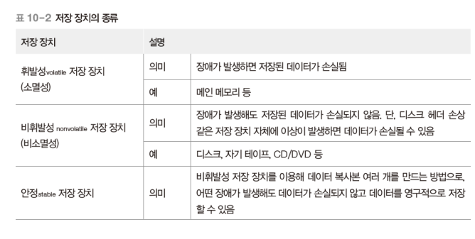 - 디스크에 발생할 수 있는 장애에 대한 회복