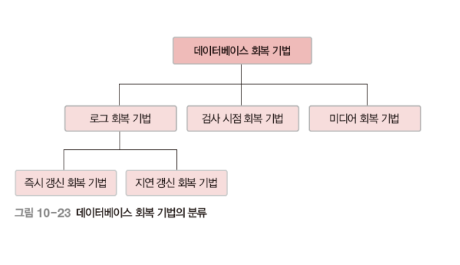 - 데이터베이스 회복은 사전 데이터 저장을 통해 이루어짐